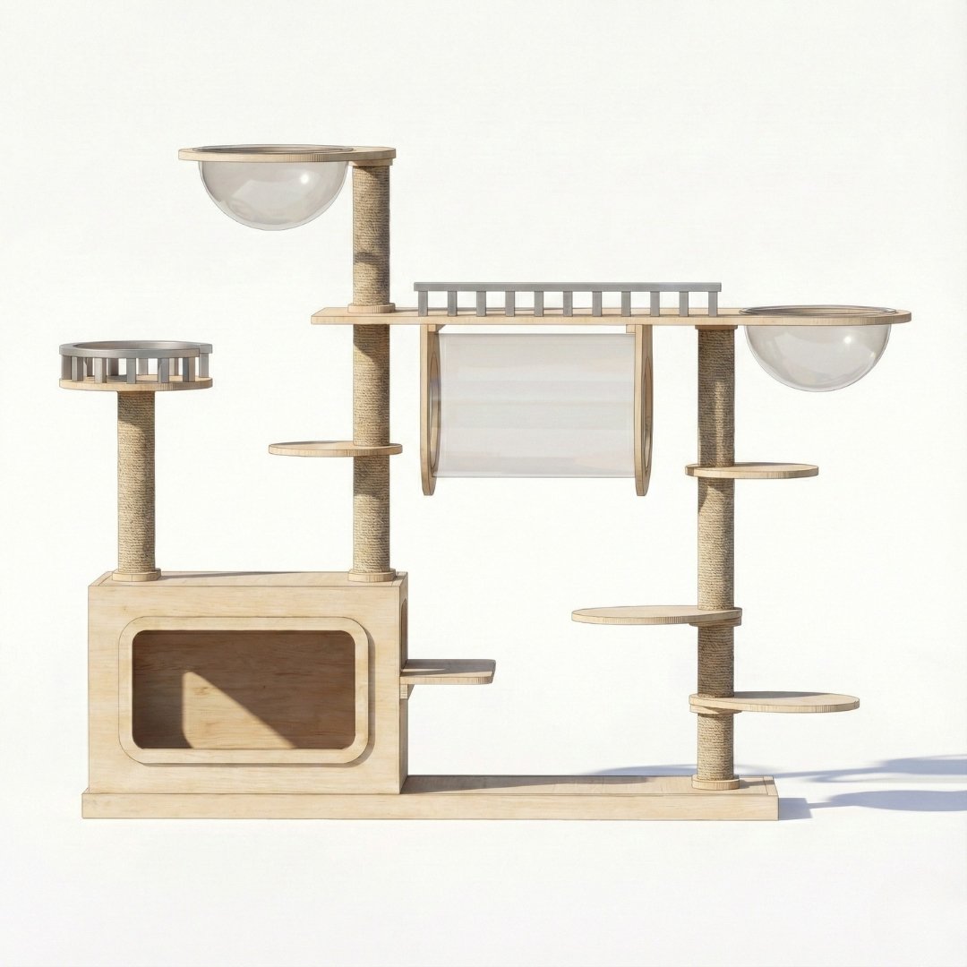 ที่สุดแห่งความอลังการเพื่อเจ้านายตัวโปรด MUCAT Sky Dome คอนโดแมวไม้จริงไซส์ยักษ์ (กว้าง 198 ซม.) ที่รวมทุกความสนุกไว้ในที่เดียว โดดเด่นด้วย หลุมอวกาศอะคริลิคใส ถึง 2 จุด และ อุโมงค์ลอยฟ้า ให้แมวเดินชมวิวได้รอบทิศทาง พร้อมบ้านแมวขนาดใหญ่ด้านล่าง แข็งแรง มั่นคง รองรับแก๊งแมวหลายตัวได้สบาย